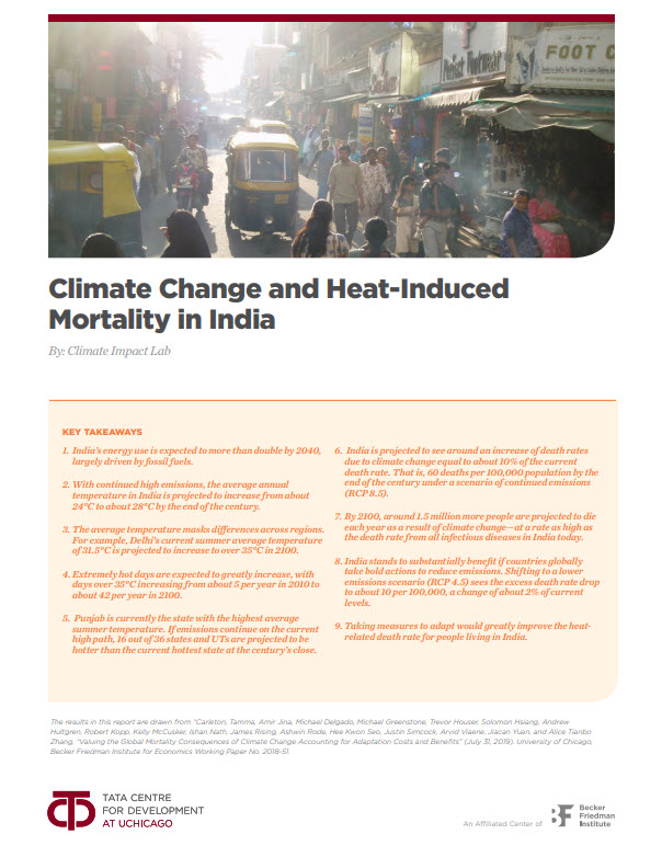 - India is projected to see around an increase of death rates due to climate change equal to about 10% of the current death rate. That is, 60 deaths per 100,000 population by the end of the century under a scenario of continued emissions (RCP 8.5).